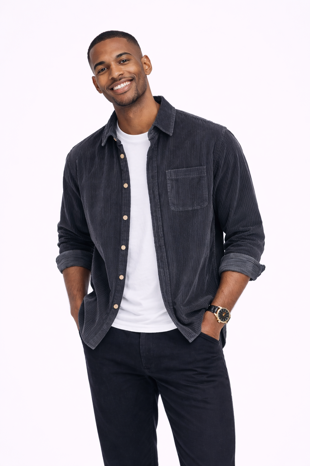 El tejido de pana premium proporciona calidez sin añadir peso, ideal para entretiempo o días frescos.
